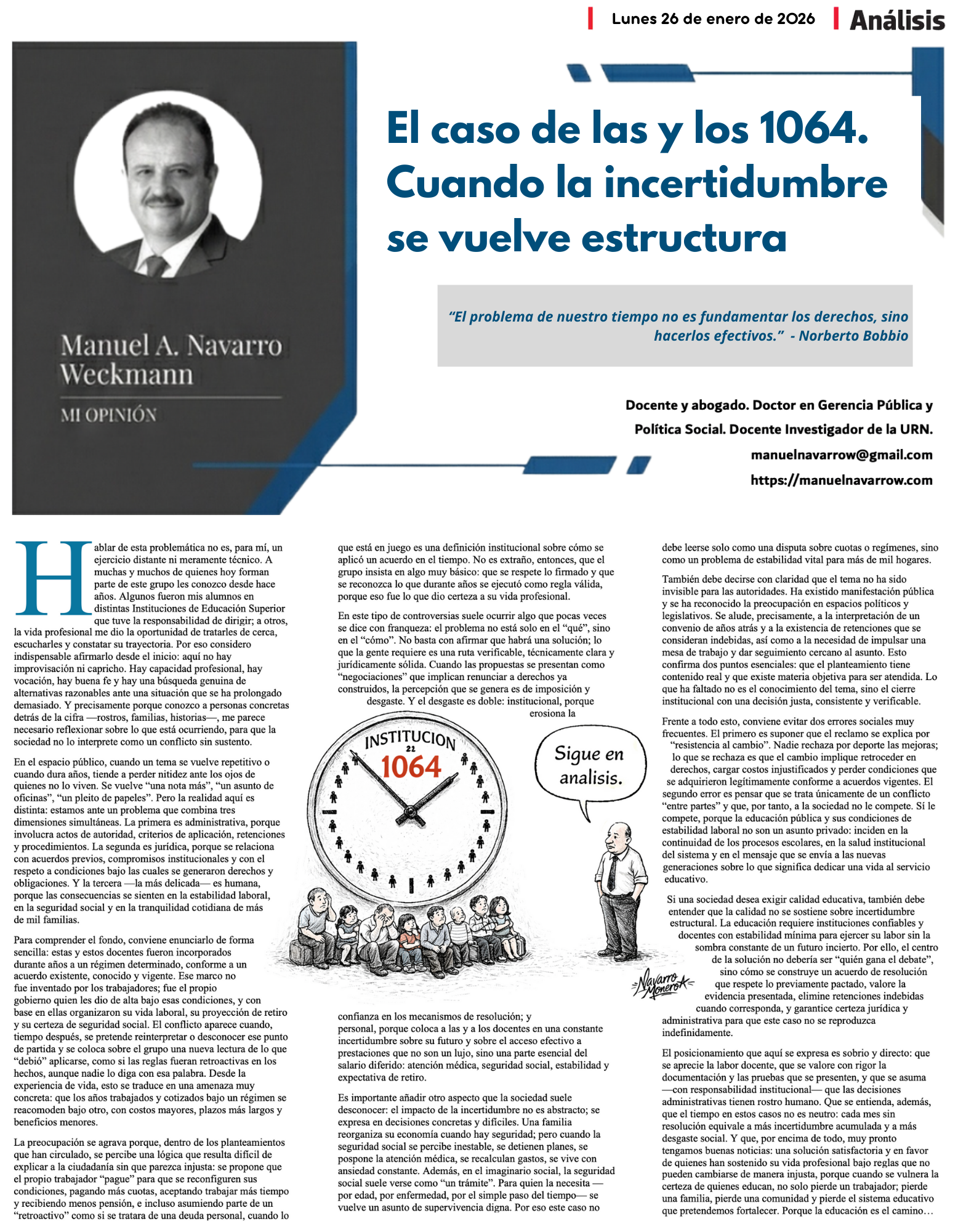 En el espacio público, cuando un tema se vuelve repetitivo o cuando dura años, tiende a perder nitidez ante los ojos de quienes no lo viven. Se vuelve “una nota más”, “un asunto de oficinas”, “un pleito de papeles”. Pero la realidad aquí es distinta: estamos ante un problema que combina tres dimensiones simultáneas. La primera es administrativa, porque involucra actos de autoridad, criterios de aplicación, retenciones y procedimientos. La segunda es jurídica, porque se relaciona con acuerdos previos, compromisos institucionales y con el respeto a condiciones bajo las cuales se generaron derechos y obligaciones. Y la tercera —la más delicada— es humana, porque las consecuencias se sienten en la estabilidad laboral, en la seguridad social y en la tranquilidad cotidiana de más de mil familias.