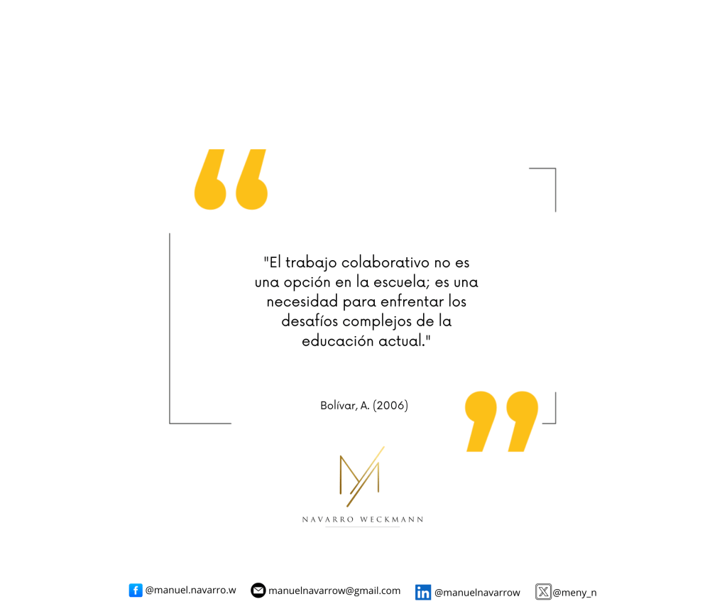 En el escenario educativo actual, caracterizado por su complejidad, diversidad de realidades y desafíos permanentes, no hay lugar para la labor aislada. La escuela del siglo XXI demanda formas de organización profesional centradas en el trabajo colectivo, en el diálogo continuo y en la construcción conjunta de respuestas. Como señala Bolívar (2006), el trabajo colaborativo no es una opción: es una necesidad.