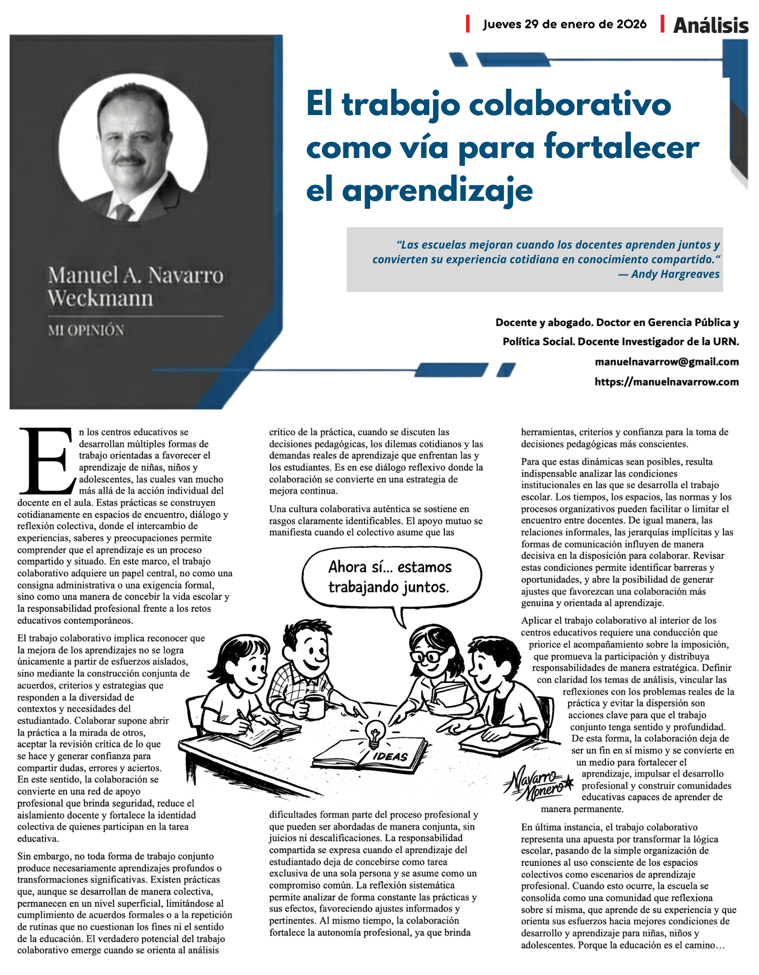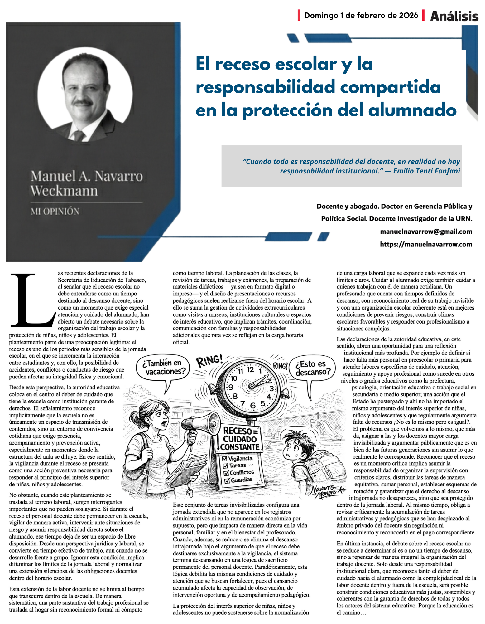 El posicionamiento que aquí se expresa es sobrio y directo: que se aprecie la labor docente, que se valore con rigor la documentación y las pruebas que se presenten, y que se asuma —con responsabilidad institucional— que las decisiones administrativas tienen rostro humano. Que se entienda, además, que el tiempo en estos casos no es neutro: cada mes sin resolución equivale a más incertidumbre acumulada y a más desgaste social. Y que, por encima de todo, muy pronto tengamos buenas noticias: una solución satisfactoria y en favor de quienes han sostenido su vida profesional bajo reglas que no pueden cambiarse de manera injusta, porque cuando se vulnera la certeza de quienes educan, no solo pierde un trabajador; pierde una familia, pierde una comunidad y pierde el sistema educativo que pretendemos fortalecer. Porque la educación es el camino…