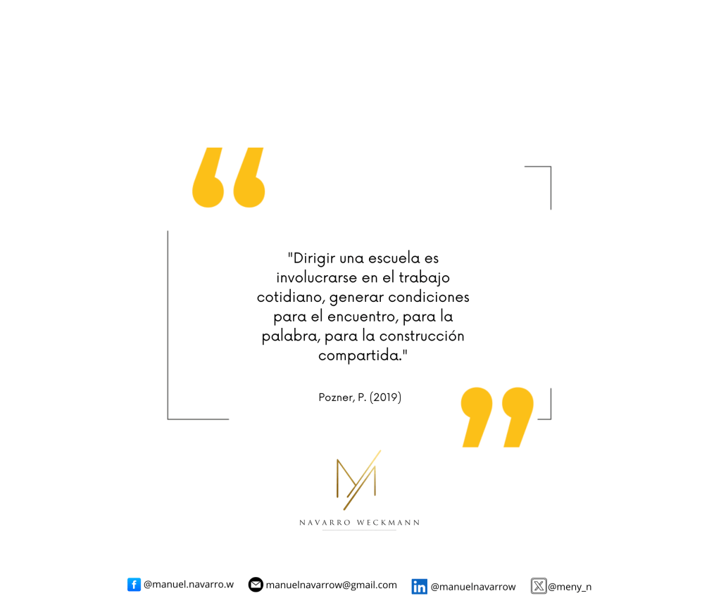 La tarea de dirigir una escuela no se limita a tomar decisiones desde la distancia o a supervisar resultados. Como lo plantea Pozner (2019), ejercer la función directiva implica involucrarse de manera genuina en el trabajo cotidiano, estar presente en los espacios donde se construye la escuela cada día, generar condiciones para el encuentro, para la palabra y para la construcción compartida de sentidos.