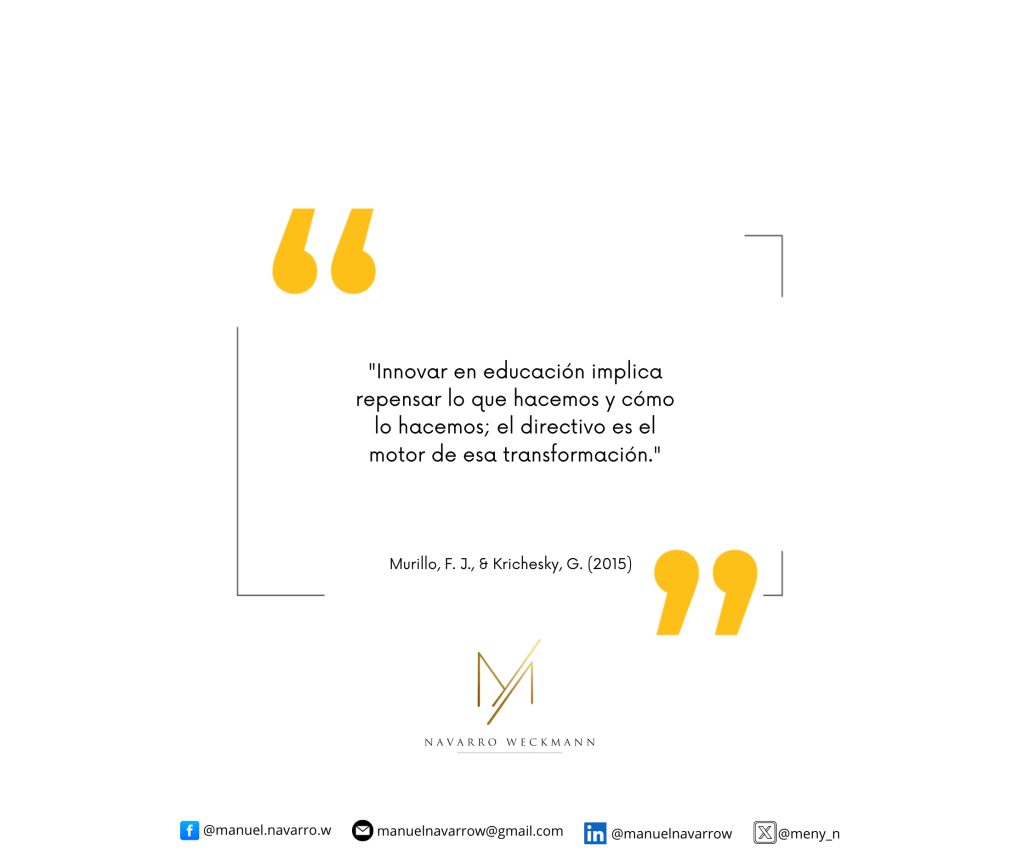 Murillo y Krichesky (2015) sostienen que innovar en educación implica repensar lo que hacemos y cómo lo hacemos, y que la dirección escolar es el motor de esa transformación. Esta afirmación coloca a quienes ejercen la función directiva en el centro de los procesos de cambio educativo.