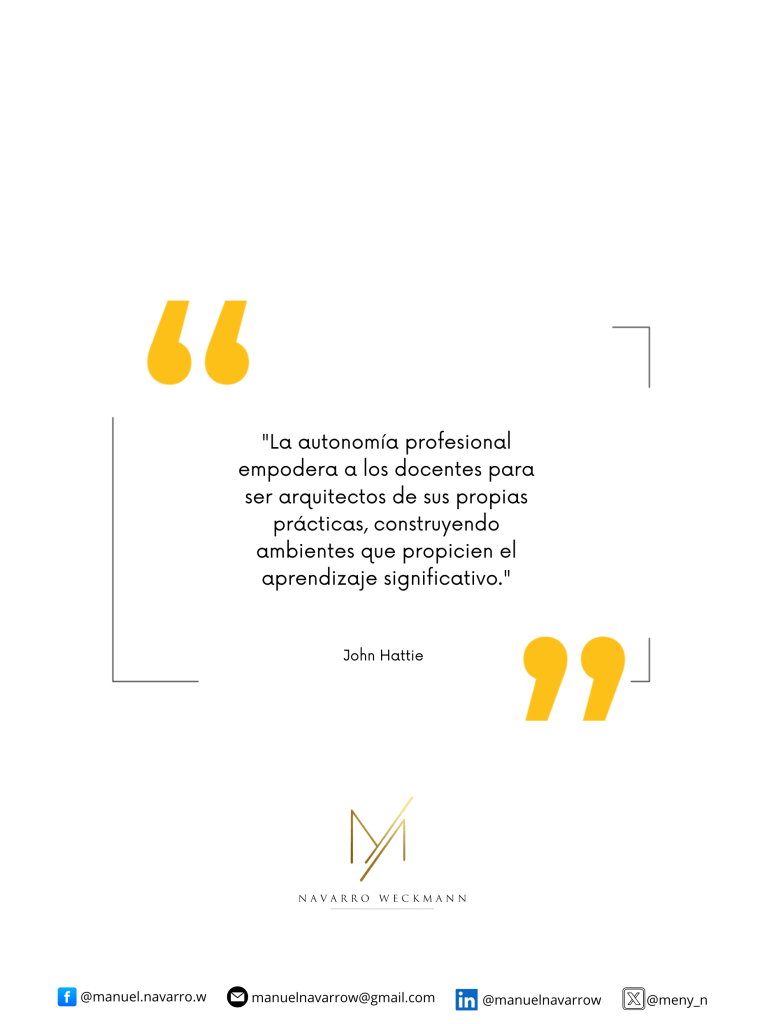 En el campo educativo contemporáneo, reconocer la autonomía profesional del docente como un elemento central no es una opción, es una necesidad. Como lo plantea John Hattie, cuando el profesorado cuenta con la posibilidad de diseñar, adaptar y reconstruir sus propias prácticas, se convierte en un verdadero arquitecto del aprendizaje, capaz de generar experiencias significativas para sus estudiantes.