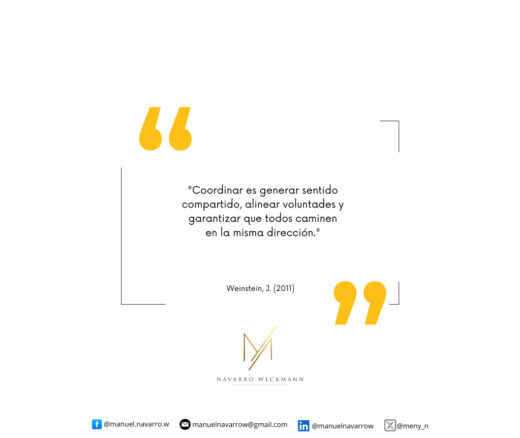 Tal como lo expresa Weinstein (2011), coordinar implica más que organizar: significa propiciar un sentido compartido, alinear voluntades y garantizar que todas y todos caminen en la misma dirección. Este planteamiento adquiere gran valor en el día a día escolar, donde las decisiones deben fomentar la participación, la corresponsabilidad y la sintonía entre las distintas voces que integran la comunidad educativa.