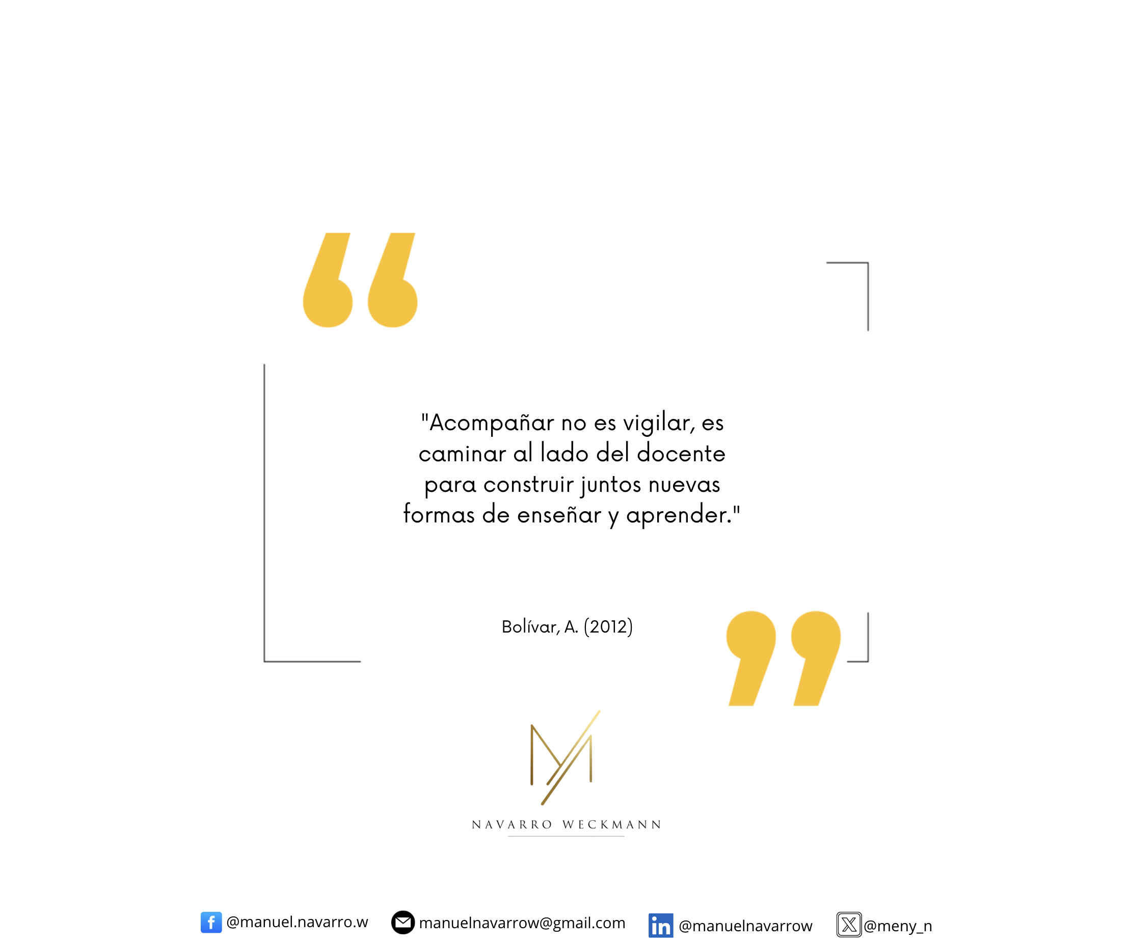 En el ámbito escolar, acompañar a las y los docentes no significa supervisar o controlar desde una mirada vertical. Significa caminar a su lado, reconocer su experiencia, sus desafíos y sus logros, y construir juntos nuevas formas de enseñar y aprender. Como lo expresa Bolívar (2012), acompañar no es vigilar, es colaborar desde la cercanía, desde el respeto, desde el compromiso colectivo con una educación más significativa.