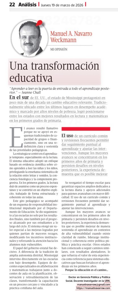 Aunque los mayores avances se concentraron en los primeros años de primaria y persisten desafíos en niveles posteriores, la experiencia demuestra que es posible mejorar de manera sostenida el aprendizaje en contextos de alta vulnerabilidad cuando existe claridad de rumbo, liderazgo institucional y coherencia entre política pública y práctica escolar. Otros estados han comenzado a seguir caminos similares, con resultados alentadores, lo que refuerza el valor de esta experiencia como referencia para sistemas educativos que buscan fortalecer el aprendizaje en los primeros años. Porque la educación es el camino…